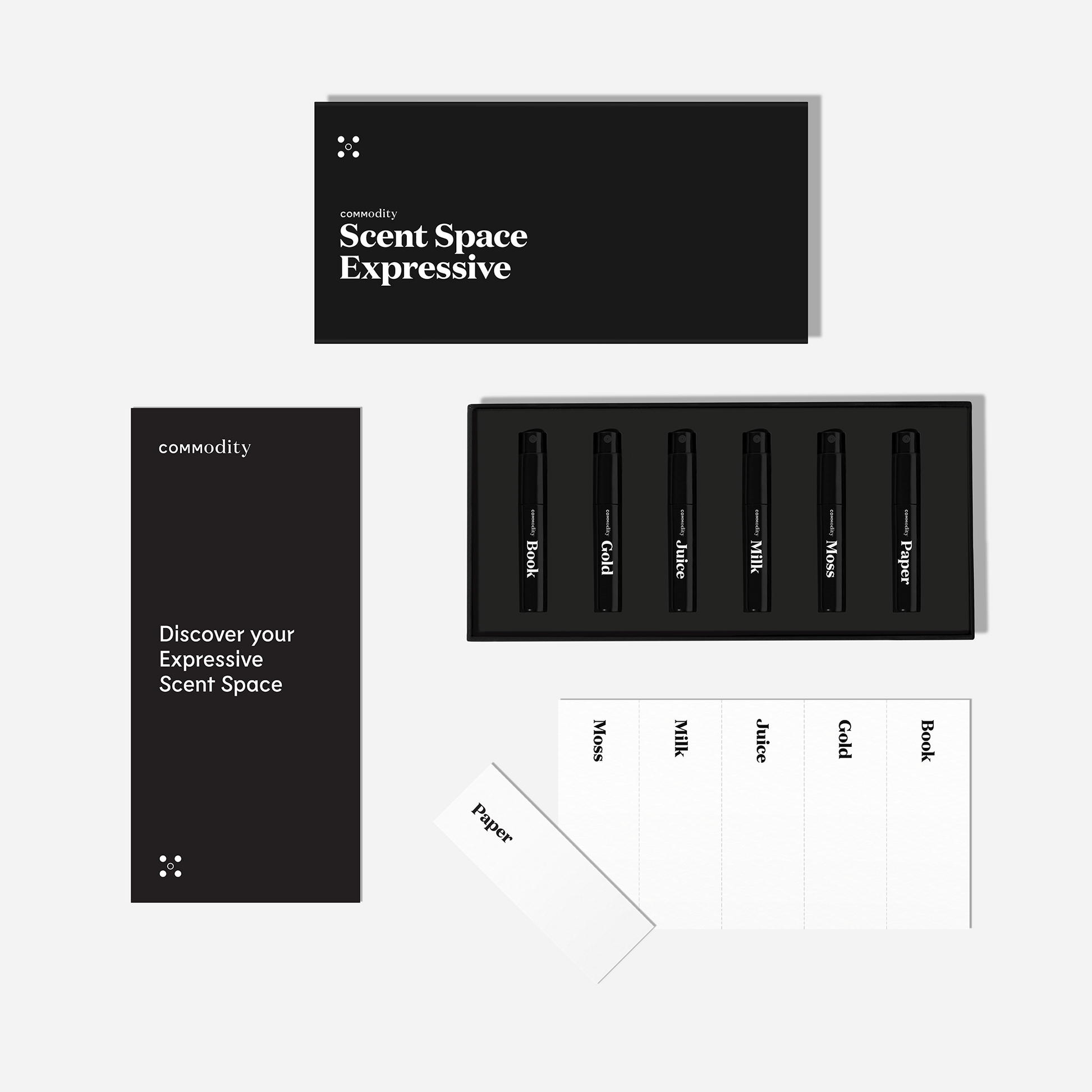Met dit in gedachten is elke Commodity geur verkrijgbaar in drie verschillende Scent Space concentraties - Personal , Expressive en Bold- zodat je jouw favoriete geur kunt vinden in de Scent space van je voorkeur.