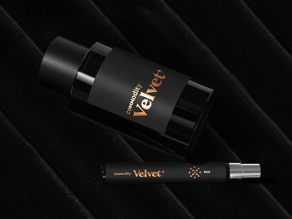 "Voor Commodity Velvet werd ik geïnspireerd door het beeld van levendige roze Turkse rozenblaadjes die zachtjes zweven over een mysterieuze, donkere achtergrond van rijkelijk warme vanille en zwarte Amber met een heerlijk vleugje geroosterde amandel in de lucht. Voor Velvet+ Bold wordt de Turkse roos versterkt met exotische saffraankruiden en zoete vanille. Om het af te maken heb ik Labdanum samengevoegd met de warmte en rijkdom van Amber om een intense, verfijnde en verleidelijke geur te creëren."-Jerome Epinette